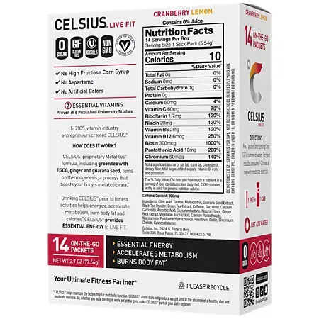 Celsius Energy Drink Stick Packs- Cranberry Lemon (14 packets)
