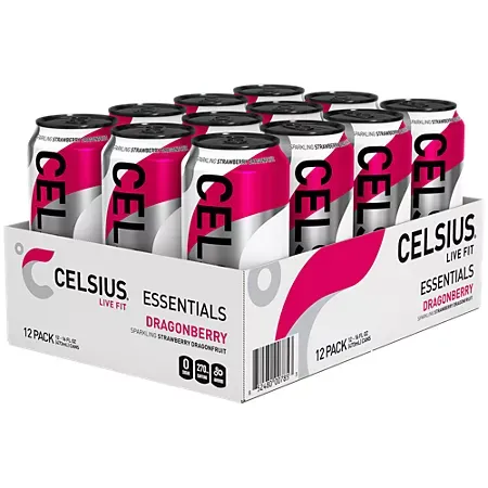 Celsius Essentials Sparkling Energy Drink – Dragonberry (12 Drinks, 16 Fl Oz. Each)