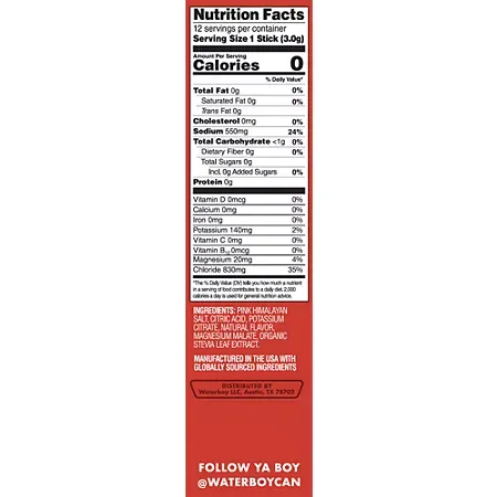 Pink himalayan salt, citric acid, potassium citrate, natural flavor, magnesium malate, organic stevia leaf extract.