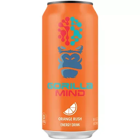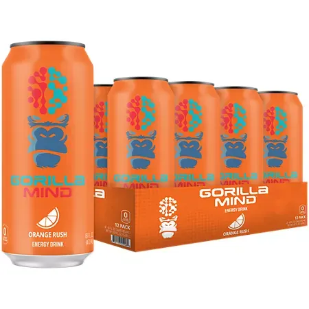 Gorilla Mind Energy – Orange Rush is a sugar-free energy drink crafted to deliver sustained energy, heightened focus, enhanced memory, increased productivity, and elevated mental clarity. Each 16 fl. oz. can contains a potent blend including 200 mg of caffeine, 1,000 mg of N-acetyl-L-tyrosine, 400 mg of Alpha-GPC, 200 mg of uridine monophosphate, 100 mg of L-theanine, 15 mg of saffron extract, 200 mcg of Huperzine A, and essential vitamins, all designed to support cognitive and physical performance without added sugar. Enjoy the bold Orange Rush flavor for a flavorful boost to your day.