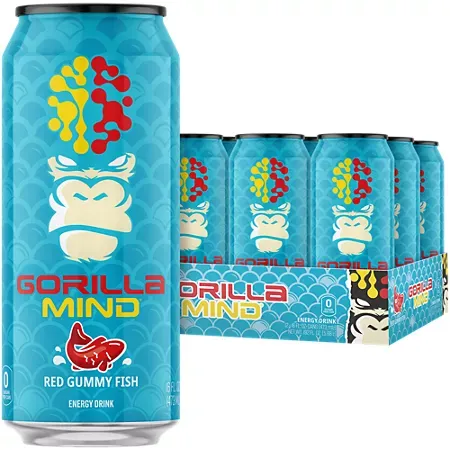 Gorilla Mind Energy Drink – Red Gummy Fish (12 Drinks, 16 fl. oz. Each)