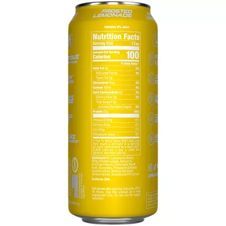 This lightly carbonated protein drink delivers a refreshing Frosted Lemonade flavor with approximately 25 g of high-quality whey protein isolate per 16 oz can, supporting muscle recovery and daily protein goals. It’s zero sugar, low calorie, and caffeine-free, offering a crisp soda-style alternative to traditional protein shakes that’s easy to enjoy anytime. Contains milk.