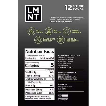 Salt (Sodium Chloride), Citric Acid, Magnesium Malate, Potassium Chloride, Natural Lemon & Lime Flavors, Stevia Leaf Extract.