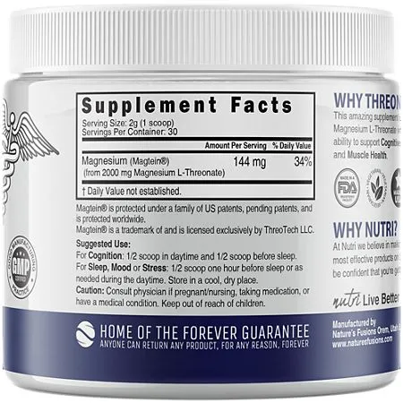 Magnesium L-Threonate Powder with Magtein – Support Cognitive Function, Memory & Sleep (30 Servings)