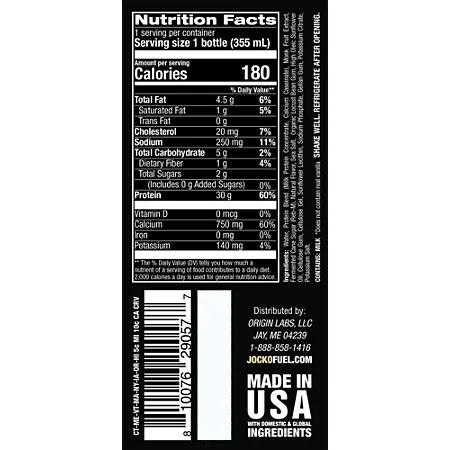 Water, Protein Blend (Milk Protein Concentrate, Calcium Caseinate), Monk Fruit Extract, Fermented Cane Sugar (Reb-M), Natural Flavor, Sea Salt, Organic Locust Bean Gum, High Oleic Sunflower Oil, Cellulose Gum, Cellulose Gel, Sunflower Lecithin, Sodium Phosphate, Gellan Gum, Potassium Citrate, Potassium Salt. Contains: Milk.