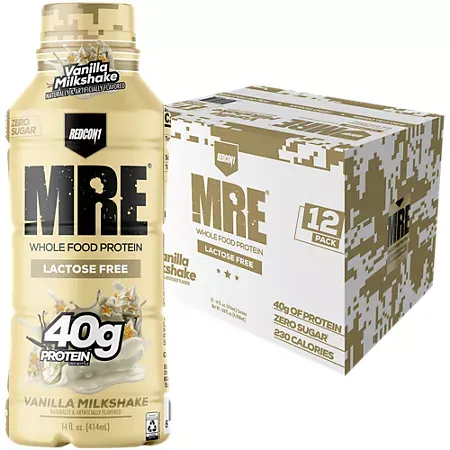 MRE Protein Shake – 40g Protein – Vanilla Milkshake (14 Fl Oz. / 12 Drinks)