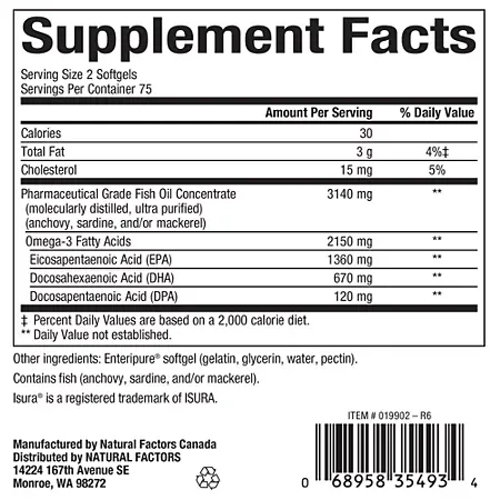 Ultra Strength Rx Omega 3 Factors – 2150 MG (150 Softgels)