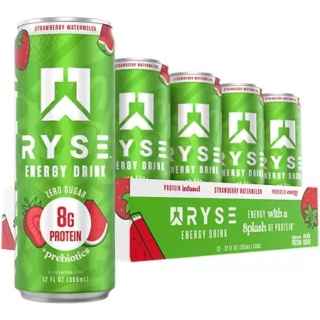 Ryse Energy Drink – 8g of Protein + Prebiotics – Strawberry Watermelon (12 Drinks / 12 Fl. Oz.)