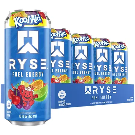 RYSE Fuel Energy Drink – Kool-Aid Tropical Punch (12 Drinks/16 fl. oz. Each)
