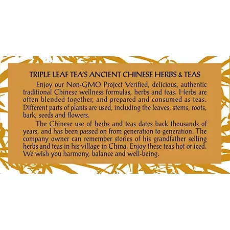 Triple Leaf Detox Tea is a carefully crafted herbal blend inspired by traditional Chinese wellness practices. It combines powerful cleansing herbs that have long been used to support the natural functions of the liver, kidneys, lungs, and blood.* This detoxifying formula is traditionally believed to help the body eliminate toxins, promote clearer and healthier-looking skin, enhance energy flow (chi), and support a balanced, calm, and positive state of mind.*