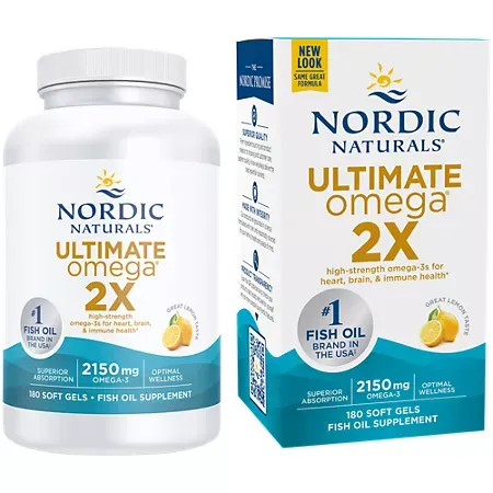Ultimate Omega® 2X from Nordic Naturals delivers one of the highest concentrations of omega-3s available to support heart, brain, and immune health. Each serving provides an impressive 2,150 mg of total omega-3s, including high levels of EPA and DHA, sourced exclusively from wild-caught sardines and anchovies. This ultra-potent formula is molecularly distilled for purity and freshness to ensure optimal absorption and quality you can trust.