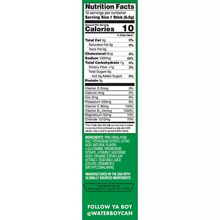 Pink himalayan salt, potassium citrate, citric acid, natural flavor, l-glutamine, magnesium citrate, vitamin c (ascorbic acid), organic stevia leaf extract, vegetable juice (color), vitamin b12 (methylcobalamin).